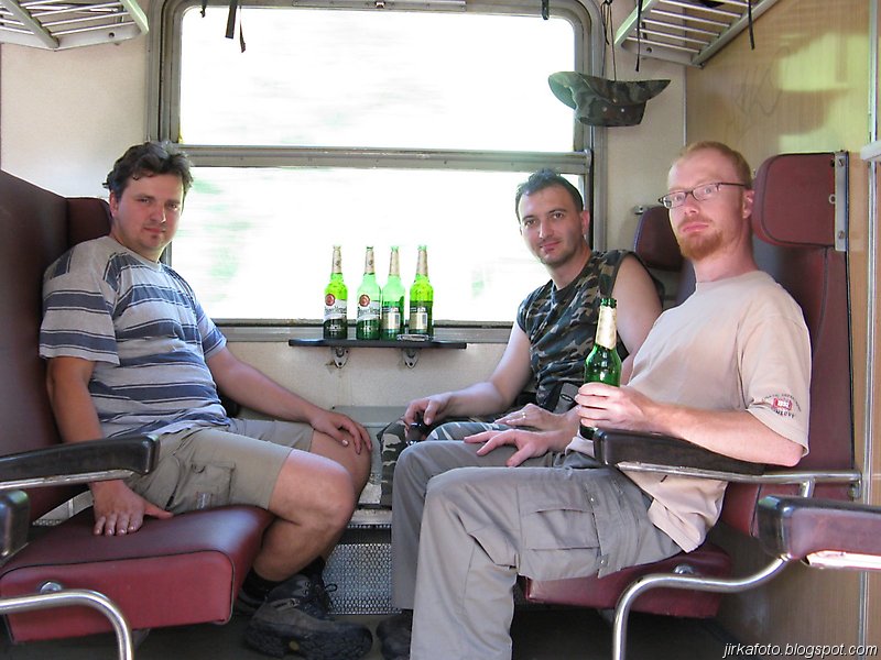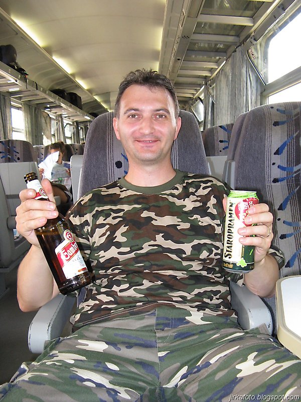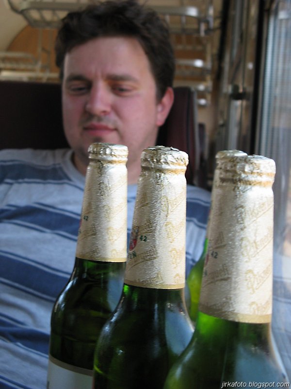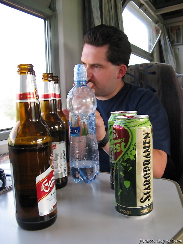 Cestou byly vypité naše skromné pivní zásoby už když se objevil před námi Říp. V Ústí nebylo potřeba přestupovat, ale naopak se k nám přidal Mandys. Do Děčína to byla chvilka, alespoň mi to tak připadlo. Možná to způsobila menší rumová smršť. Vlak z Děčína do České Skalice jel až téměř za hodinu a tak přišla na řadu obhlídka města a především místních pohostinství. Honzu s Michalem zaujal na place hned před nádražím stánek s vietnamským rychlým občerstvením. Dali si nějaké nudle, či co to vlastně bylo a lahváče. U kiosku byl i pultík na stojáka. Co čert nechtěl, za chvíli u nás stáli městský četníci a co že popíjíme alkohol na veřejnosti, že mají tady jakousi vyhlášku co tohle zakazuje a kdesi, cosi. Nakonec to dopadlo domluvou. Po této zkušenosti se naše partička raději odebrala do restaurace na jedno rychlé pivko. Ve vlaku do Skalice se pak už nic mimořádného nestalo.