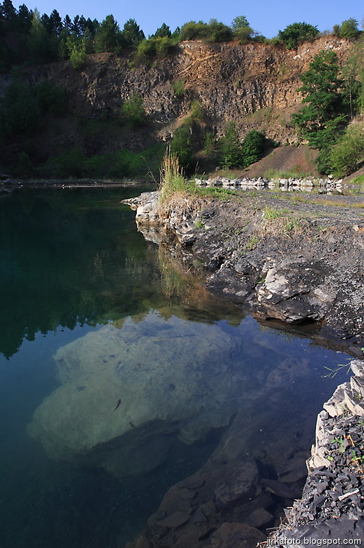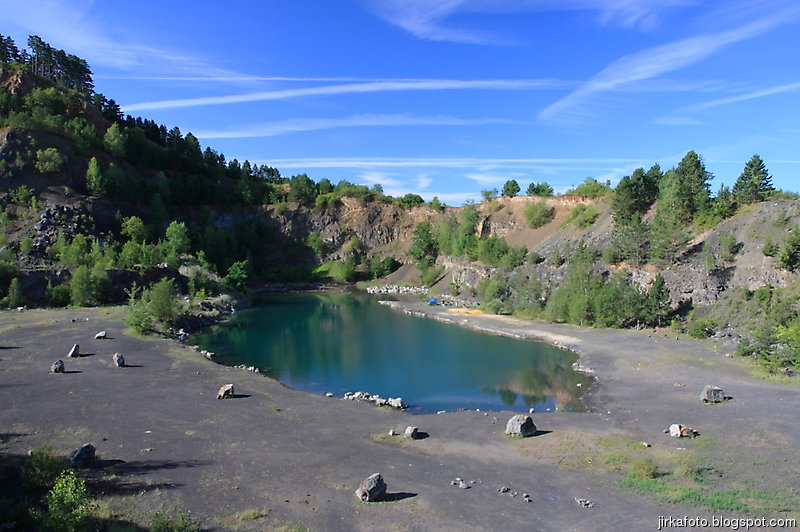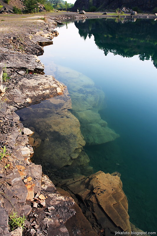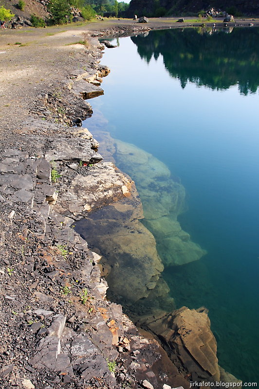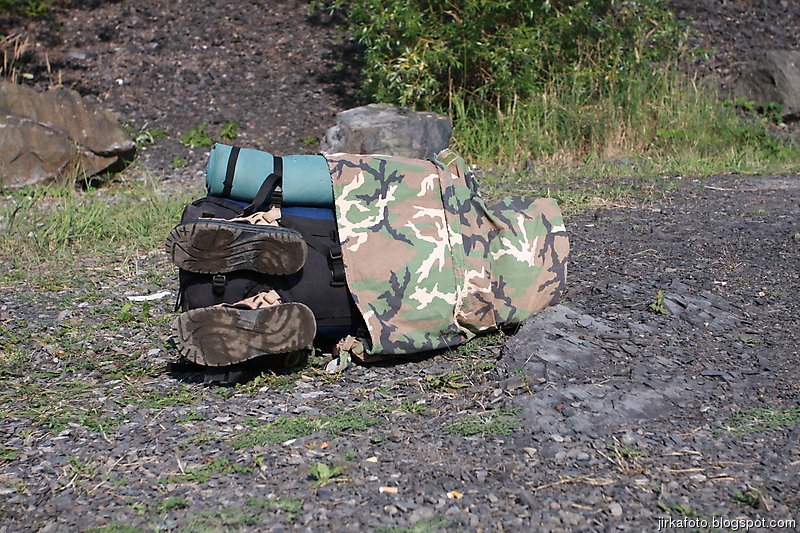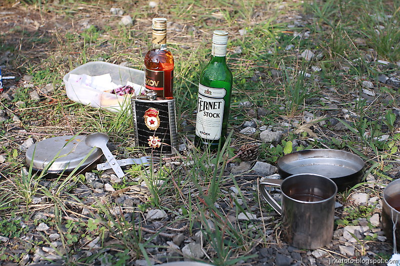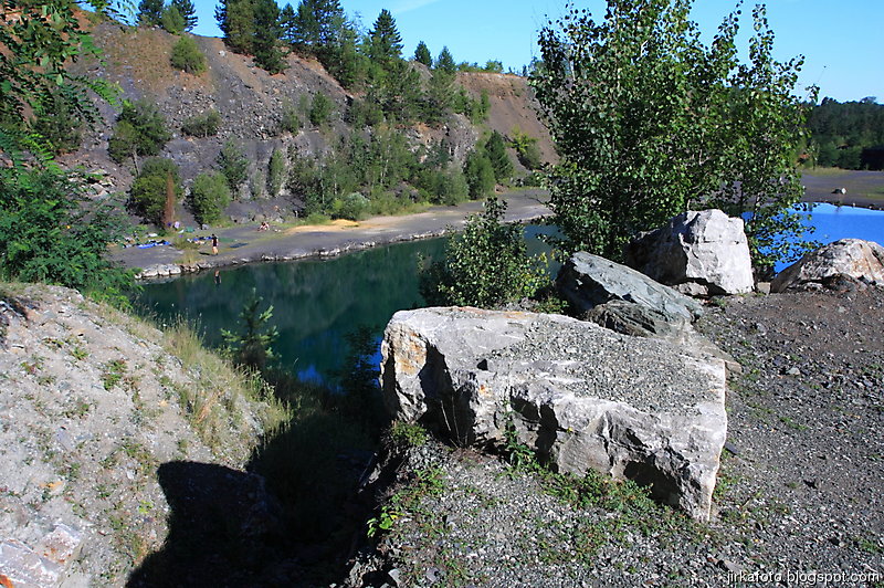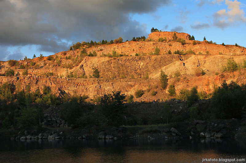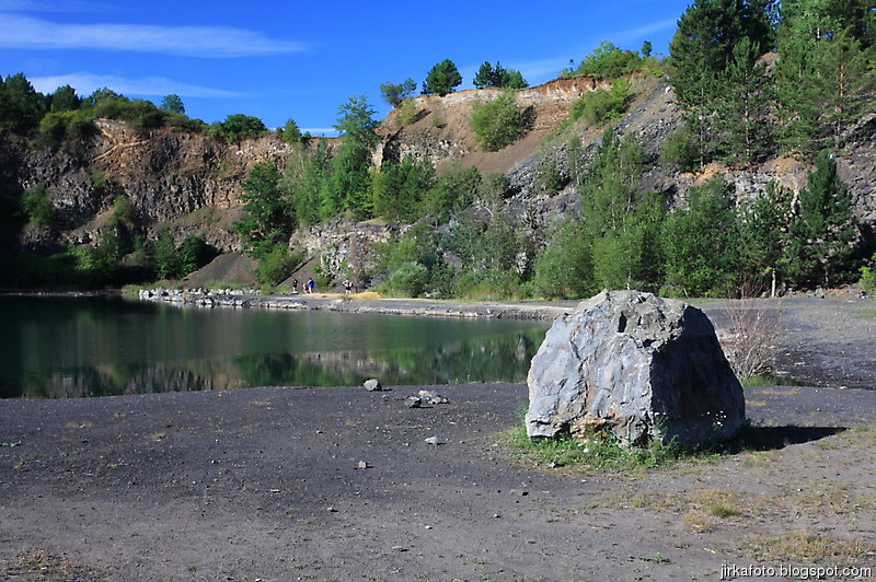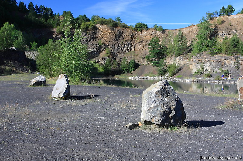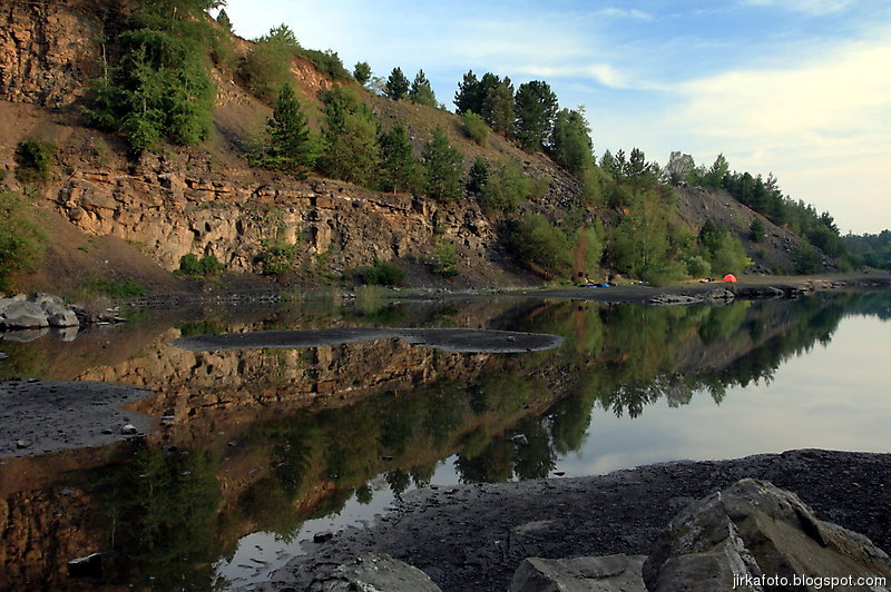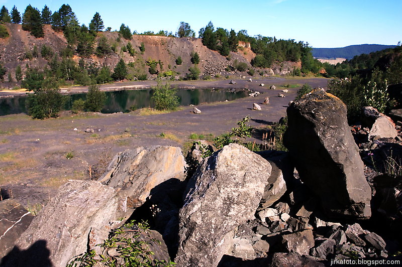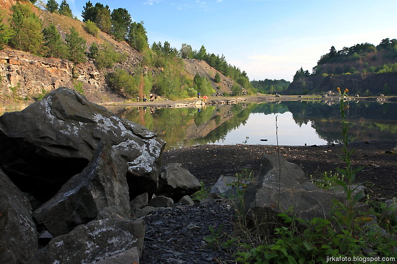 Ráno bylo znovu azůro. Udělal jsem si krátký výlet s foťákem kolem lomu. Jiřina si při vstávání slušně hvul se zádama. Dost ho to bolelo, ale nakonec to rozdejchal. Je vidět, že už nejsme žádní mladíci. A to ještě potřeboval vypadnou celkem brzo kvůli odjezdu vlaku. Snídaně, koupačka, balení a v tom se k jezírku přiřítila doslova výprava jakýchsi mlaďochů s kladívkama. Nelenili a začali mydlit do snad všech šutrů co se jim připletli pod nohy. Po chvíli jsme zjistili, že jsou to němci. Dobalili jsme se, Ujo konečně vylezl z vody (koupali jsme se zásadně naostro) a vydali se na nádraží se zastávkou u Medvěda. Kupodivu do nás pivko moc neteklo, zato o zpestření se postarala celkem zmatená servírka. Nejdřív Xpooovi přinesla jiné jídlo, potom jinou přílohu. Mě pro změnu malé pivko. Asi jsem nevypadal dostatečně žíznivě. Cesta do Prahy ubíhala v uspávacím rytmu. Na Hlaváku nás opustil Ujo, šinoucí si to k Brnu, my sbyvší jsme zapluli k potrefené huse. Tam jsem se rozloučil se zbylými, kteří měli cíl Mělník.