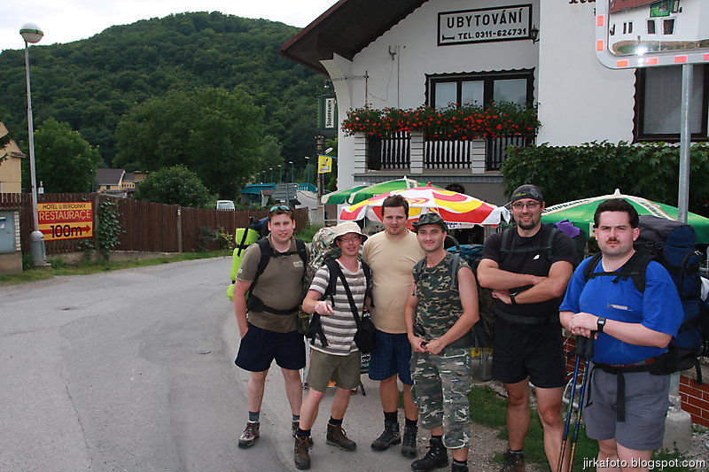 Světe div se, lokálka jela skutečně na čas, takže hurá do vagónu. zajímavé, když člověk jede na vandr a je naložený celý většonou v dost použitém oblečení, tak si jako na potvoru přistoupí hezké, mladé děvčiny. No nic, Xpoo vytáhl z báglu karty, já ohnivou vodu a taky se to dalo. Cestu do Prahy na Hlavák jsme zvládli celkem v pohodě. Tam nás už čekal další do party a zbývalo se přesunout na Smícháč. Mezitím nás Madys stíhal někde z metra. Chlapci měli hlad a tak zaveleli k nástupu do právě přistaveného vlaku směr Beroun. Zanechali jsme nebohého Mandyse svému osudu a odkvačili s tím že nás dožene buď metrem, nebo dalším vlakem. Za Smíchovským nádražím je na jednom pidináměstíčku zahrádka. Paráda. To ale byla jediná radost. Obsluha dosti vlažná a hlavně zmatená. Pivko taky nic moc. Co nejdřív jsme se zvedli, a protože byl ještě nějaký čas do odjezdu vlaku, odnesla to nádražka. Tady nám pivko chutnalo o poznání lépe. Stihli jsme ale jen jedno a už jsme utíkali (doslova) do lokálky. Za okny se želvím tempem vlekla krajina Prokopského údolí, až jsme po dosti kodrcavé cestě přijeli do Berouna.