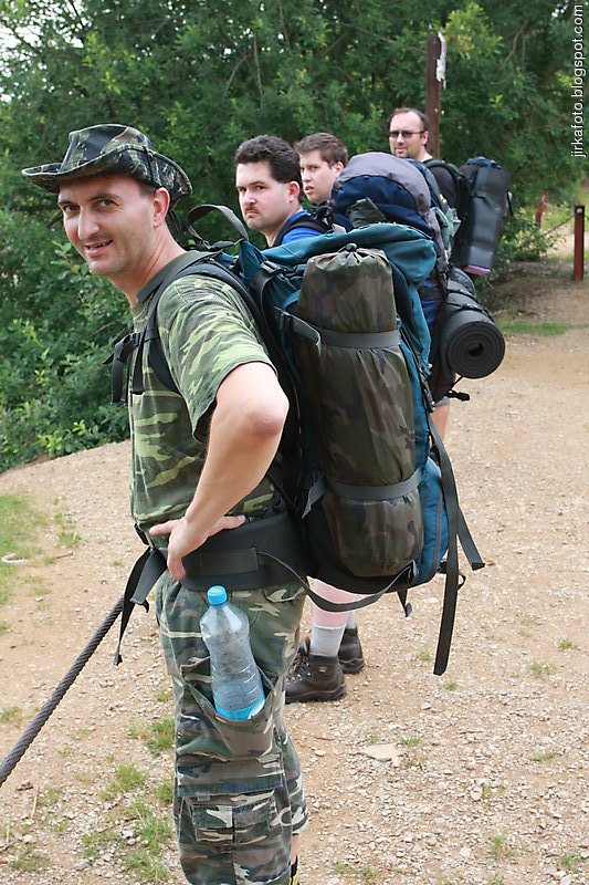 Ráno bylo lehounce pod mrakem, ale koupačka to jistila, snídaně, lenivé balení, obout pohorky a na cestu. Prošli jsme kolem rybníka Suchomasty, kde měl původně být nocleh a byli jsme rádi, že to tak nedopadlo. Bylo tam duslo, vlhko a voda taky nic extra. Šlo se dál, náš cíl bylo zdolání Koněprus. Cesta vedla pořád do kopce. Vyčasilo se, slunce ukazovalo jak umí zatápět. Na asfaltu nebylo příjemně. Ujo nás vedl přes stejnojmennou obec a za ní byl konečně lesík, za to však s luxusním stoupákem. K jeskyním jsme došli řádně zdrchaní, zpocení a žízniví, že v první chvíli ani na pivo nebyla chuť. Po nezbytné relaxaci Mandys s Michalem vnikli do jeskyní, mrknout se na vápenec. My ostatní jsme podřimovali ve stínu a zaháněli žízeň u kiosku. Nechtělo se nám chodit v tom vedru s rancem na zádech, ale nebylo zbití. Naštěstí cesta vedla po rovině , kousek před Sbskem už z celkem slušného kopečka. Odpočinek u pramene Koda a za pár kroků jsme byli v civilizaci. U nádraží nás na chvíli zdržela hospůdka. Z ní si pamatuju pěkné dívčiny a dobré pivko značky Rychtář. Přešli jsme most a neodolali koupeli v berounce. Před námi byl pochod do kopečka k lomům Amerika. Jelikož žaludky mnohých z nás se začali dožadovat náplně, zapadli jsme po cestě do penzionu *DOPLNIT NÁZEV* Příjemná, usměvavá a pěkná obsluha. Nic naplat, jdeme zase do kopce. Na rozcestí u Kubrychovy boudy proběhlo lehké handrkování kudy nejlíp dál. Šlapeme pořád do kopce na Malou Ameriku. Trefili jsme neznačenou odbočku v levo. Malá Amerika, dalo by se napsat jedno velké zklamání. Přístup na pikaču, ale to by se dalo skousnout, horší to bylo s místem na zakempení. Dole u vody do nešlo, štoly jsme neznali, tak jedině nahoře, což je pitomé, ráno se mi dolů na vykoupání chtít nebude. Takže pokračujeme dál k Mexiku. Začíná se stmívat, mám hlad a nohy mi taky naznačují, že je čas k odpočinku. V lesíku u Mexika nám dochází trpělivost a táboříme. Mandys s ohněm opět nezklamal. Během noci několikrát lehce sprchne, ale to nejzajímavější nás ještě čeká. Tím je návštěva divokých prasat a to hned dvakrát. Zjistil jsem, že je docela nepříjemné, když vás uprostřed noci v lese vzbudí prasečí chrochtání a kvikot. Ale přežili jsme.