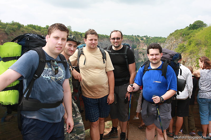 Ráno je zase pařák. Obhlídneme Mexiko, stavíme se u památníku politických vězňů a dál šlapeme směrem na Velkou Ameriku. Mandys, Jirka a já jsme neodolali a seběhli dolů se vykoupat. Za chvíli u vody byl zbytek tlupy, kromě Uja. Voda špičková, čistá a studená. Ani se nám odtamtud nechtělo ale nechtěl jsem naprudit Uja, který hlídal naší bagáž. Ukázalo se, že jsme skončili s představením akorát včas, turisti se začínali rojit. Cestou do Mořiny se nic, co by stálo za zaznamenání nestalo. Ve vesnici nám padnul do oka restauraci, kde jsme se krapet zdrželi. Bodrý hostinskýnám rozdal jídelní lístky, tři z nás si objednali kuřecí játra se zampiony a pórkem. Ten vyvalil oči na objednávku a šel si popovídat s kuchařkou, cože to tam píše za blbosti. Nicméně jsme svou objednávku dostali :-) Z Mořiny po silnici na Karlštejn: Nuda, nuda, nuda. Cestou se zatáhlo. Pod hradem na lavičce dumáme kam dál. Původní plán dojít do Radotína se otřásá v základech. Nakonec vítězí názor jet zpátky do Berouna a přespat v lomu, jako v pátek. Za mostem, před odbočkou na nádraží je krčma U Ezopa. Divná obsluha, drahota. Proto rychle platíme a jdeme na vlak. Loučíme se s Mandysem, který je na pondělí povolán do práce, ostatní jedou opačným směrem. V klimatizovaném vagónu je veselo, dopíjí se slivovice, kohosi napadne, že bysme mohli vystoupit v srbsku a jít na Rychtáře, případně do penzionu. V berouně odmítneme jít do Mědvěda, zato máme spadeno na Eldorádo, což je restaurace na Jarově. Akorát docházíme a začíná slušně chc… pršet. Naštěstí je to jen větší přeháňka. Na zahrádce pod střechou je fajn. Hostinská nám netradičně podává pivka a jídlo z klasického okna. Po občerstvení míříme k už známému místu. Je tu skoro vylidněno, jen pár potápěčů. Na ohníčku opékáme poslední zásoby, nezbytná koupel a celkem rychle usínám ve spacáku. K ránu se o mě pokoušela zima, ale po zapnutí spacoše jsem na ní vyzrál.
