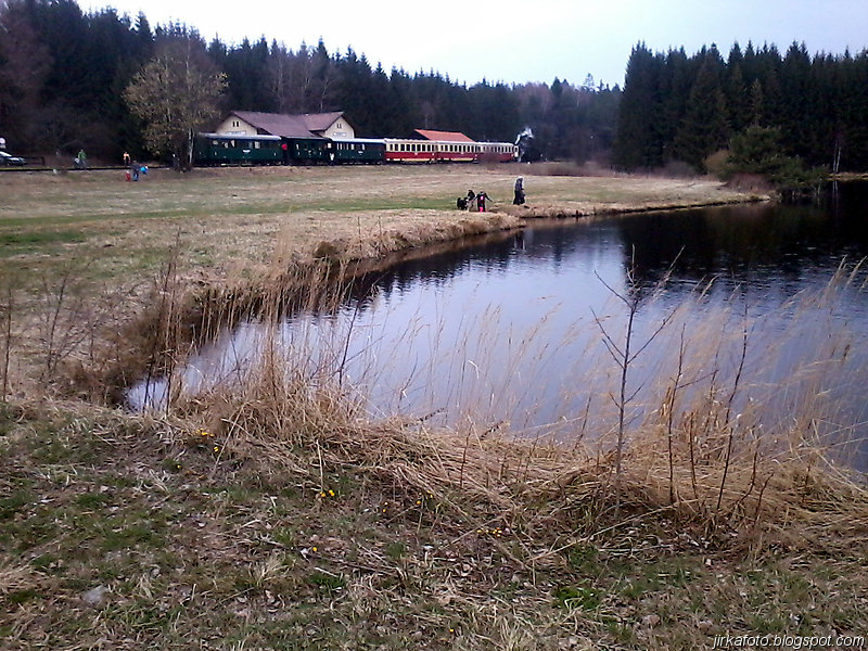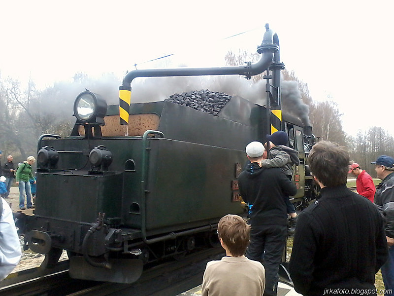Ve vlaku je celkem tlačenice, ale to nám nevadí, jelikož jsme se po chvíli přesunuli do barového vagónu. Odnáší to párky a prémiové pivko opět od Bernarda. Asi v půli cesty se do lokomotivy doplňuje voda, což chvíli trvá. Fotím svým těžce nemoderním mobilem pár fotek a při návratu do vagónu sbírám mezi kolejemi velký narezlý šroub. Ani nevím, co mě to napadlo, odnáším ho jedné z mladých průvodčích, jesli nevypadl z lokomotivy. Měl jsem za to, že si poklepe na čelo a třeba chvíli poklábosíme. Ale ta důvěřivá osoba to vzala vážně a se zmíněným šroubem si to namířila ke strojvedoucímu. Nedokázal jsem tomu zabránit. Vypadalo to, že se chlapci v okýknu přelomí vejpůl smíchy. No nic. Konečná pro nás byla v zastávce Hůrky.