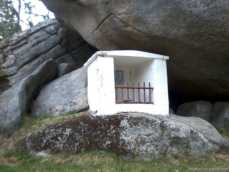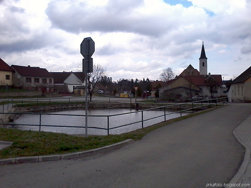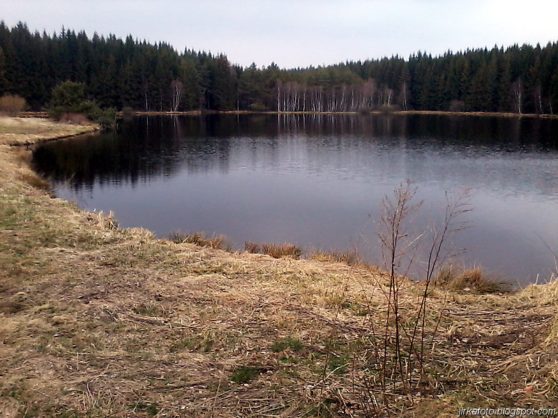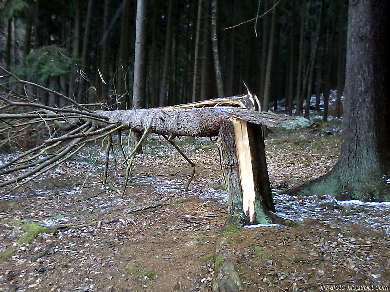 Kdo by se chtěl škrábat na Vítkův hrádek, tak tam moc zajímavého neuvidí, nanejvíš jednu pobořenou pidi zídku. Odbočili jsme tedy po zelené do Blažejova, doufaje v otevřenou krčmu. To jsme se ale se zlou potázali. Hospoda sice ve veslici je, ale zavřená. Podle cedule ještě dvě hodiny. Sice potkáváme něco jako majitele, ale ten o kšeft nestojí. Vracíme se tedy zpátky k potoku na červenou a pokračujeme do Jinřiše. Cesta se mi dost líbí. Z jedné strany je les, na druhé potok a jehličí pod nohama. Místama z mraku vykouklo i slunce. Bylo krásně na světě.