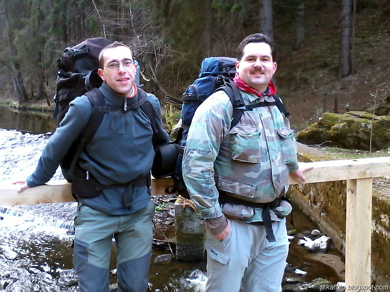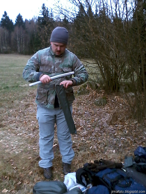 Ráno jsem měl ztvrdlou tkaničku od bot a z trávy se jiskřilo, vypadalo to že zase mrzlo. To nám ani nevadilo, hlavně že svítilo sluníčko na vymetené obloze. Bylo zajímavé, jak moc vnitřní strana tropika u stanu přes noc navlhne od vydýchaného vzduchu. U stanu se to dá ještě pochopit, ale že budu ráno osprchovaný i plachtou nad hamakou, to jsem netušil. Holt není to žádný letní vandr. Nasnídali jsme se a své navlhlé přístřešky dali sušit na louku. Po zabalení nám zbývalo už jen kousek do Jindřihova Hradce na vlak. Po cestě jsem si postupně sundaval jednotlivé vrstvy oblečení. Chlapci to měli s vlakem tak akorát, já jsem si počkal kolem půl hodiny. Ve Veselí se udál zase přestup, tentokrát byl čas jen na bramboračku (výborná) a pivko. Jak jsem byl zvyklý na zimu, zdálo se mi v kupé strašné vedro a moc nescházelo abych před Prahou neusnul.