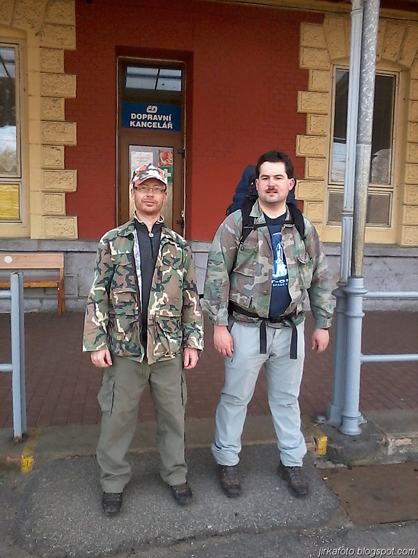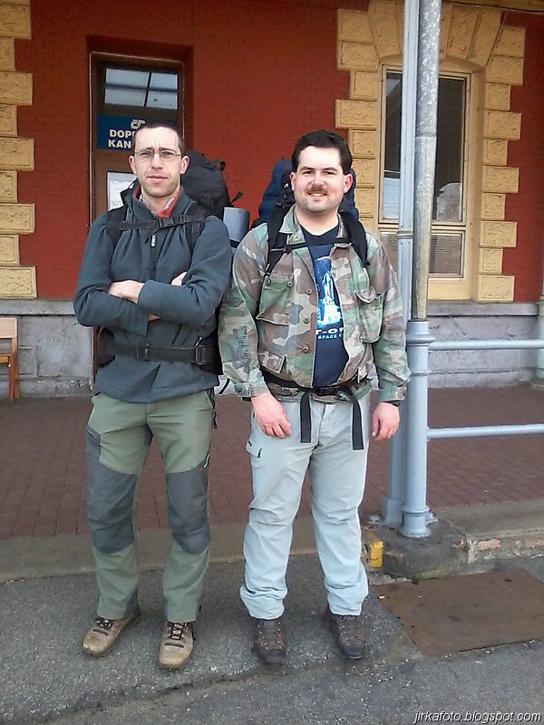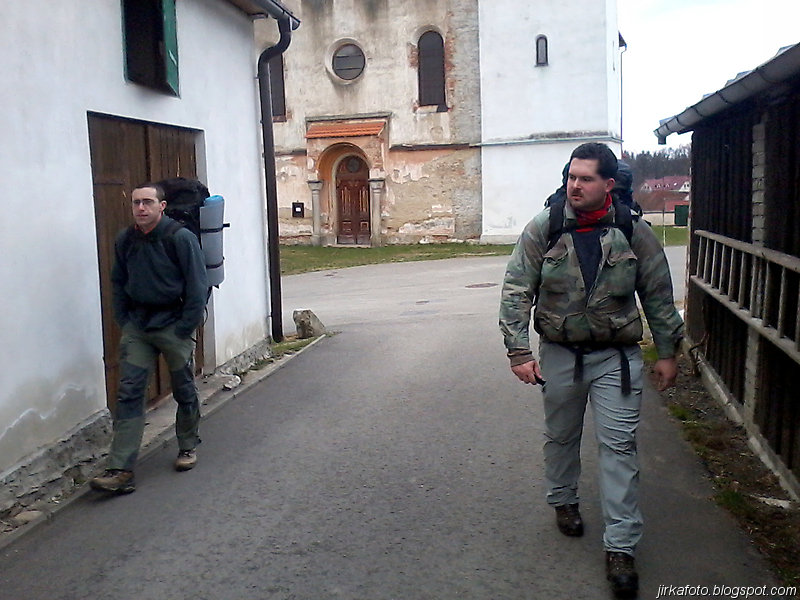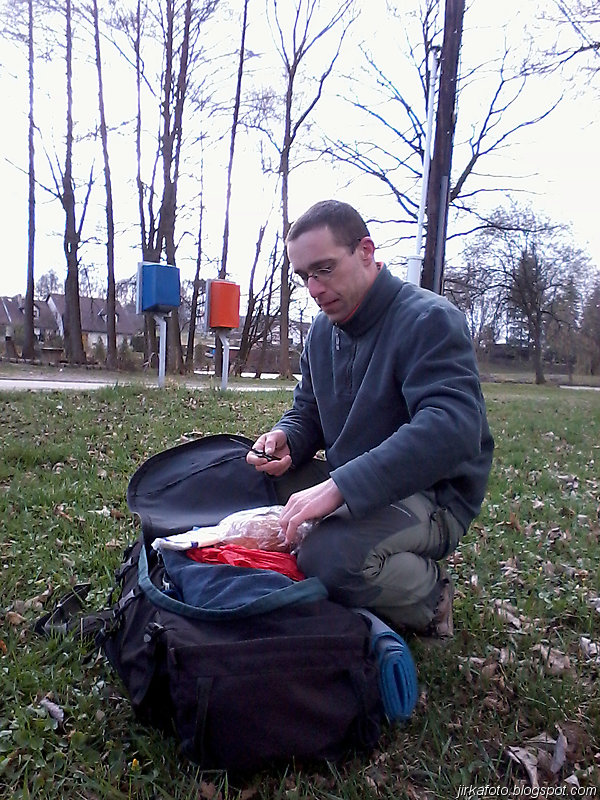 Po výsadku z penzionu s čelovkama chvíli zmateně pobíháme po setemělé vesnici a hledáme odbočku po zelené na zastávku. To se nakonec podaří, ale stejně důkladně probíhalá i Jardův výběr noclehu. Nakonec všechno dobře dopadá, ale jelikož Jarda vybral sice slušné místo na rozbití stanů, pro mě tady ale nejsou žádné vhodné stromy na uvázání hamaky. Moc neprotestuju a beru za vděk modernějším stanovým přístřeším.