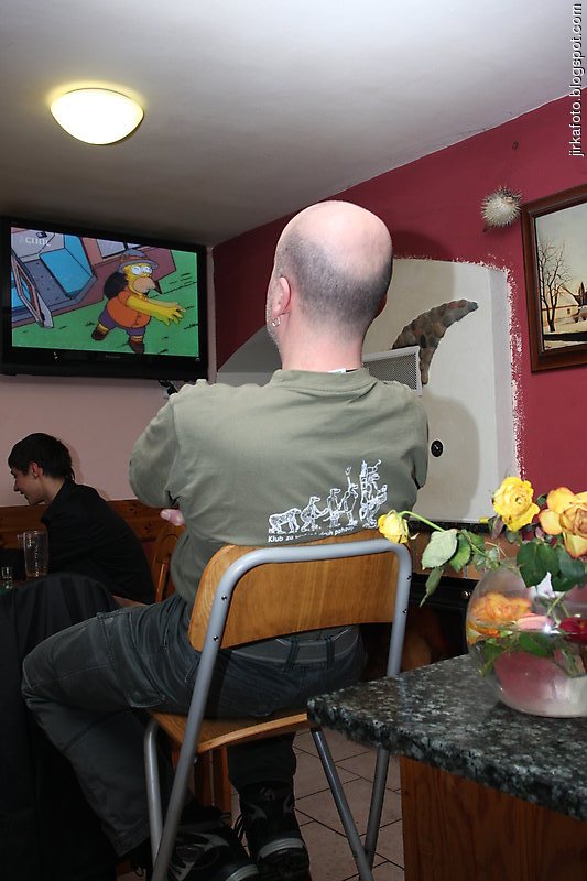 nás uvítala starší odhodlaná výčepní a mladí závisláci na automatech. Neměli tady nic moc k jídlu, ale o to víc do chlapců teklo pivko a rumíky. Musely mi vystačit dvě pivka a potom už jen kofoly, jelikož jsem měl v Praze zaparkované auto a nechtělo se mi soutěžit s policií o papíry. Kluci ještě nakoupili nějaké zásoby na další cestu.