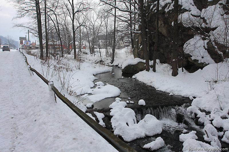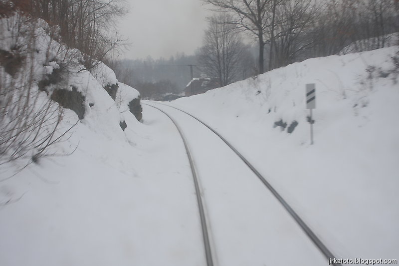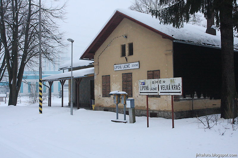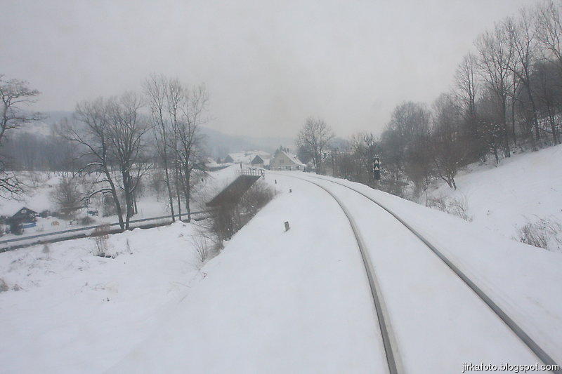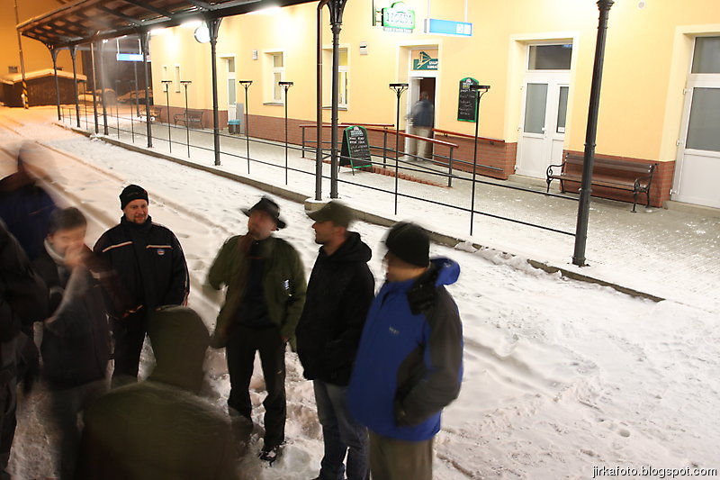 Tak pelášíme za nepřestávajího sněžení zpátky na vlak, tentokrát byla naším cílem zastávka Horní Lipová. Náhoda tomu chtěla, v lokálce jsme potkali stejnou průvodčí jako odpoledne. Docela se divila, cože jedeme zpátky tak brzo. Po výstupu z vlaku nám jakási paní poradila hospodu na kovárně. Tu jsme nenašli, zato vzali za vděk otevřeným pensionem. Po opětovném osvěžení nebylo zbytí a naše kroky dusaly sněhem k