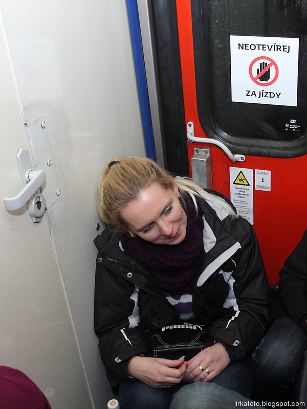 V následujícím vlaku, což byl klasický šukafon jsme obsadili místo pro jízdní kola, kde po chvíli začaly mezi námi kolovat lahve s různými tekutinami, ponejvíc s obsahem alkoholu. Největší úspěch měl ale Kouďák se svou šťávou z kysaného zelí, koupenou na kterési tržnici. Byl to opravdu lomcovák! Naštěstí mladá blonďatá průvodčí měla pro náš provizorní squat porozumnění. Celou cestu jsem si pro sebe říkal, hlavně opatrně s alkoholem, spíš venku na mrazu, nemuselo by to dopadnout dobře. Nacamraný člověk omrzne jedna dvě.