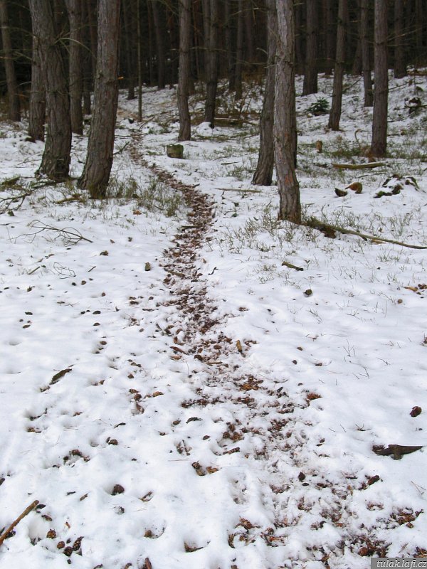 V sobotu vstávám brzo, krátce po 7 mi jede vlak. Stíhám a po necelé hodině vystupuju v Kanině. Přecházím silnici a za Velkým Újezdem mizím úvozovou cestou v lese. V otevřené krajině slušně foukalo, v lese je nádherný klid. Protože nejdu po značených cestách, po chvíli jsem nucený se poradit s mou letitou mapou. Mířím si to údolím po vyjetých stopách od traktoru. Potkávám skupinku pracujících, s jedním se dáváme do řeči. Varuje mě před myslivci, mají tady hon. Naštěstí je nepotkávám, jen slyším jejich psy a občas zahlédnu vyplašenou zvěř. U jednoho rozcestí vidím terénní auto a k němu cupitá postarší nimrod. Ptá se mě, jestli jsem nevyděl nějaké srnčí. Potvrzuji, na oplátku se ptám po modré turistické. Neví, ale ukáže mi směr na obec Zahájí.