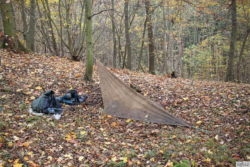 Minulý týden byl v pátek státní svátek, udělalo se hezké počasí a neodolatelně mě to táhlo z paneláku do přírody. Chci vyzkoušet Ujův zapůjčený bágl a taky mě láká přespat v podzimním lese. Jako obvykle se balím na poslední chvíli. Beru si jen to nejnutnější, spacák, krátkou nafukovačku, celtu a pončo. Přibaluju brašnu s foťákem, trochu jídla a lahev s vodou.