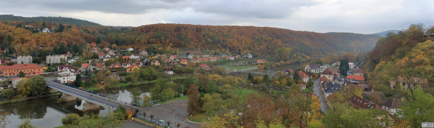 Ráno jedu vlakem směrem na Beroun. Na přestupu mám čas zajít na chvíli do pivovaru na jedno. Pokračuju dál do Roztok u Křivoklátu. Přisedá dívčina s temně hnědýma očima a se šelmou v tašce. Fretka to tuším že byla. V těch očích bych se rád topil. Ale konec snění, blíží se Roztoky. Vystupuju z vlaku, je kolem poledne. Nacházím cestu vedoucí samozřejmě do kopce a za chvíli jdu po pravé straně Berounky. Jak si tak chodím, přemítám o všem možném a najednou přede mnou silnice. A žlutá turistická značka. Co to ? Mapu nemaje, zkusím kam mě cesta dovede. Směr mám dobrý, není čím bych se měl znervózňoval. Slunce o sobě dává vědět, na palouku u silnice svačím. Pár týdnů jsem nic fyzického nedělal a je to znát. Nešlape mi to tak, jak bych si představoval. Šinu si to dál, za lesem je vesnice. Račice. Vzpomněl jsem si, že to byla jedna ze zastávek při cestě z Berouna. Zastavuju místního fotografa. Je hovorný, navrhuje mi pár cest, kudy bych se mohl vydat. Nakonec jdu do kopce nad vesnicí. Procházím mělkým údolím v ochranném pásmu vodního zdroje. Je to malý potůček. Funím dál, objevuje se přede mnou křížení snad pěti cest. Nic tady není značené, nemám tuchu, kudy se vydat dál. Radši tahám z báglu jídlo a svačím. Začínám cítit nohy, je to pro ně nezvyk, celé odpoledne mě nést a s batohem na zádech. Taky zjišťuju, že mé nové pohorky mi jsou opravdu malé a už je nejspíš nerozšlápnu. Nakonec si vybírám cestu, která má podle odhadu nejlepší směr. Po chvíli se mi ztrácí v lese. Znáte to. Jdete lesní pěšinou ta je čím dál užší až se úplně ztratí mezi stromy. Nakonec to nevydržím a potupně zapínám GPS v mobilu. Mám před sebou sestup po hřebeni do civilizace, obcházet se mi to nechce. Dole mě čeká chůze po železniční trati. U vesnice to už nevydržím a mizím na stezku podle vody. Vítám se s řekou. Po chvíli se objevuju na železniční zastávce Žloukovice. Za půl hodiny jede vlak do Berouna. Nějaký hajzlík ve mně mi šeptá, počkej na vlak, máš toho dost, bolí tě nohy, co bys pohledával v lese. Neposlechl jsem ho, hryznul se, dal si batoh zase na záda a pokračoval dál. Za vesnicí mě čekal další kopec k chatové osadě. Začíná se šeřit, v lese zvlášť rychle. Přemýšlím o noclehu, ideálně skončit blízko Nižboru, abych to zítra neměl daleko. Míjím pár dobrých míst, potom klesám do smrkového lesa. V něm je už skoro tma a nevlídně. Buky a javory teď na podzim vypadají skvěle, chci najít takové místo. Na poslední chvíli nacházím rozumně zašitý plácek, kousek nad cestou. Je tu jen myslivecký posed. Snad nikoho nenapadne si jít zastřílet. Pro dnešek s chozením končím, stavím přístřeší. Za chvíli je tma. Jsem dost unavený, bolí mě nohy, koleno kyčle, jako starého dědka. V noci se pořád převaluju, párkrát sjíždím z karimatky. Nad ránem se opodál ozývá takové divné štěkání, ale podle hlasu to pes není. Je to stejně celkem daleko, tak to neřeším. Vstávám, až když je vidět. O včerejším alespoň částečně slunečném dni si dnes můžu nechat zdát. Mraky jsou rozlezlé po celé obloze. Přicházím do Nižboru, fotím u zámku údolí Berounky a koukám, že místní samoobsluha má otevřeno. Kupuju šunku, pár rohlíků a vodu, prže nevím jak to bude po cestě se studánkama. Začíná drobně poprchávat. Další cesta je jasná, přes rozhlednu do Berouna. To znamená zase do kopce. Nějak se nemůžu rozchodit. Bolí mě nohy, ale zatínám zuby, dnešní cíl je jasný. Jdu kolem hřiště, kde konečně snídám. Dál cesta pokračuje podél pastvin do mírného kopce až na odbočku od Habrového potoka. Tam se zvedá už výživný krpál. Vycházím na kopec u obce Lísek a dávám pauzu. Bohužel, na focení nejsou dobré podmínky. Oblačno, opar na obzoru, všechno je ploché, nevýrazné. Chvíli hledám pokračování trasy, radši polohu kontroluju s GPS, dnes opravdu nemám v plánu chodit do neznáma. Ještě trochu do kopce a jsem u rozhledny Děd. Je to pěkná malá stavba. Rozhoduju se, kudy dál. Na západ po zelené, nebo východním směrem po modré? Druhá varianta vítězí, zdá se mi že bych nemusel tolik chodit po asfaltu. Cestou z rozhledny se mi ještě daří ztratit značku. Naštěstí tu chodí dost lidí, jdu za nimi a dělám dobře. U vyhlídky nad Berounem fotím, dokonce o sobě dává vědět i slunce. Na cestě mě zastavuje skupinka starších lidí, paní se mě hned ptá: Neviděl jste mojí dceru? Neznám vaší dceru, tak vám nedokážu říct – odpovídám. Následuje popis děvčete a vzpomínka na uvědoměle kráčející dorostenku cestou k rozhledně. Jakýsi strýc vykřikne cosi ve smyslu: No jó, ta už je v Plzni . Můžu jen doufat, že jim to dobře dopadlo. Beroun mě vítá seběhnutím kopce a dole asfaltem. Párkrát se ptám na cestu k nádraží, vždy mi lidé ochotně poradí a za chvíli vidím známou budovu. Nejdřív ale směřují mé kroky do pivovaru. Trocha civilizace mi jen pomůže, zvlášť když bude v podobě vytopené krčmy, dobrého pivka a oběda. Jak nízké, ale příjemné. Jídlo je dobré, pivko taky, vlak mi jede tak akorát. Co víc si přát. Měl jsem co dělat, abych ve vlaku neusnul :-)