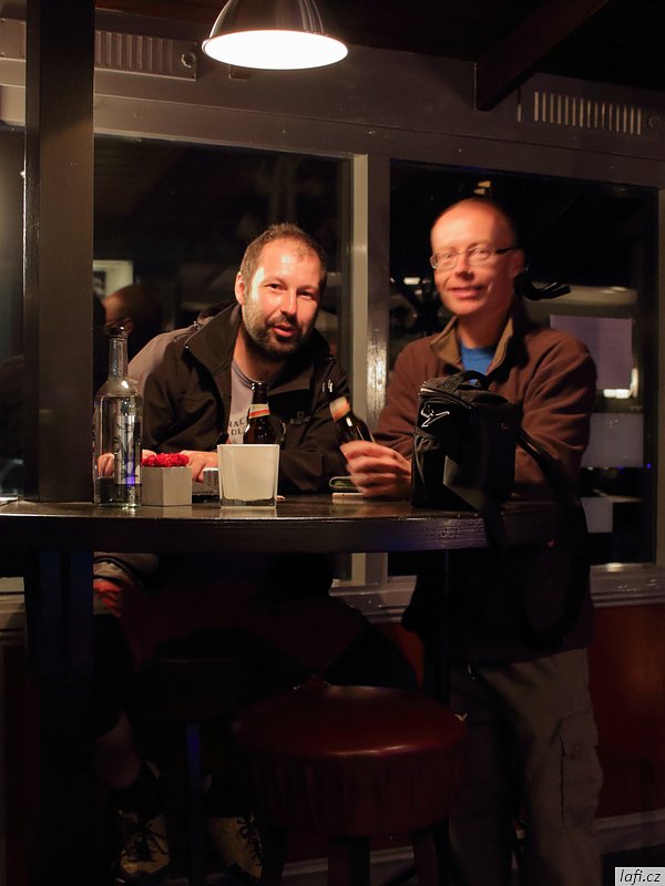 Setkáváme se v sobotu ráno v loděnici. Po mírném zmatku s nekompatibilním střešním nosičem odjíždíme. V Německu nám přestává fungovat navigace, ještě že jsem si stáhnul offline mapy. Ručně navigovat podle turistických map je hodně nešikovné. K večeru, už za šera přijíždíme na parkoviště ke kempu. Míra slibuje hospodu. Nacházíme ceduli Seawolf, jdeme podle šipek a skutečně, hospoda a otevřená. Vypadá to, že tu milují Elvise, jeho fotky jsou všude. Na baru je několik důchodců. Pivo nám nabízí lahvový Heineken. Po vypití a kostrbaté domluvě dostáváme místní Amstel. To už přichází dvě blondýny a dávají se s námi do řeči. Pořád se ptají jestli máme boat – loď. Yes, of course, we have a boat, kayak, sea kayak. What is it a kayak? Dostává se nám odpověď. Z jejich slov mlhavě tušíme, že pravděpodobně fungují jako společnice pro osamělé jachtaře. Že bysme příště vzali debl kajaky? :) Potom si ještě vzpomínám nějaké panáky na baru a jak jsem zafičel u auta do spacáku. Hned první večer se tedy dost povedl.