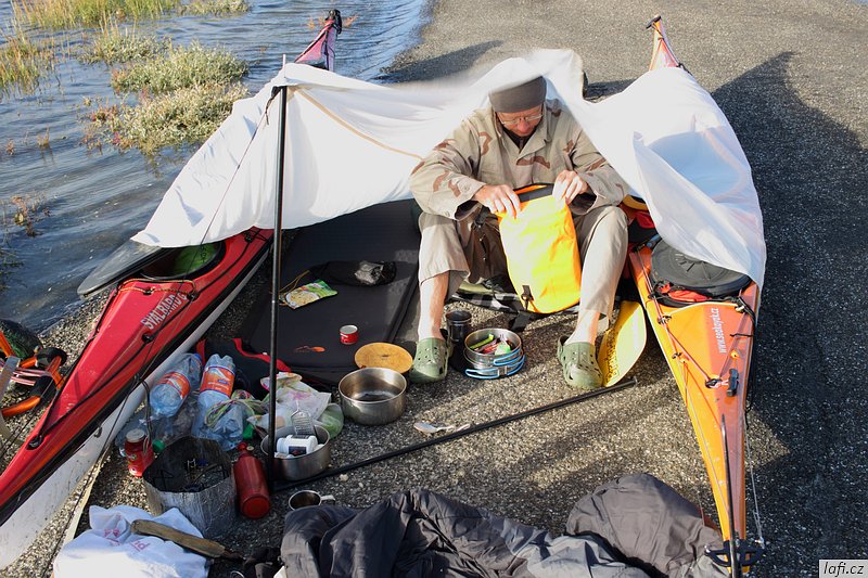 Nakonec jedeme jen my dva, ostatním se nechce. Nevadí, bude to komorní. Dohadujeme se, co kdo vezme. S Mírou jsem na delší akci ještě nebyl, netuším, co bere za vybavení. Postupně redukujeme věci. I tak mi při balení přijde, že toho mám nějak hodně. Do poslední chvíle se rozhoduju o výběru spacáku. Nakonec měknu a beru teplý tří sezónní. Shodou okolností jsem před pár dny pořídil z bazaru fotoaparát Canon EOS 100D. Je to nejmenší zrcadlovka na světě. Myslím ideální na takové akce jako lepší foťák. Z výbavy dokupuju pytlíky na ruce a malý lodní pytel. Rozmýšlím se ještě nad vodáckýma kalhotama a botama, ale nakonec nechávám rozhodnutí na později. Měním asi 100 eur, kupuju zásoby jídla a vína na cestu a můžeme jet.
