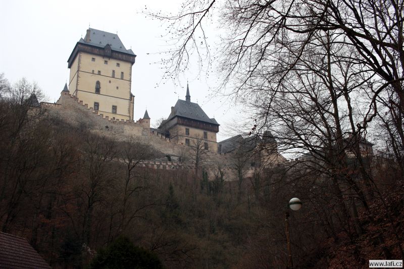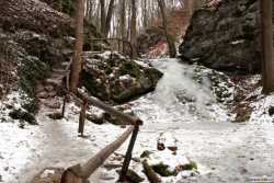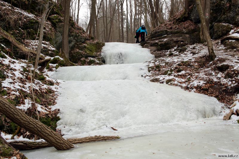 Skutečná maturita nastává u Bubovických vodopádů, samozřejmě zamrzlých. Ty mi, spolu s pár trampy, posloužily jako nouzová stezka, spíš skluzavka. Docházím ke Karlštejnu, mám pohybu v namrzlém terénu dost.