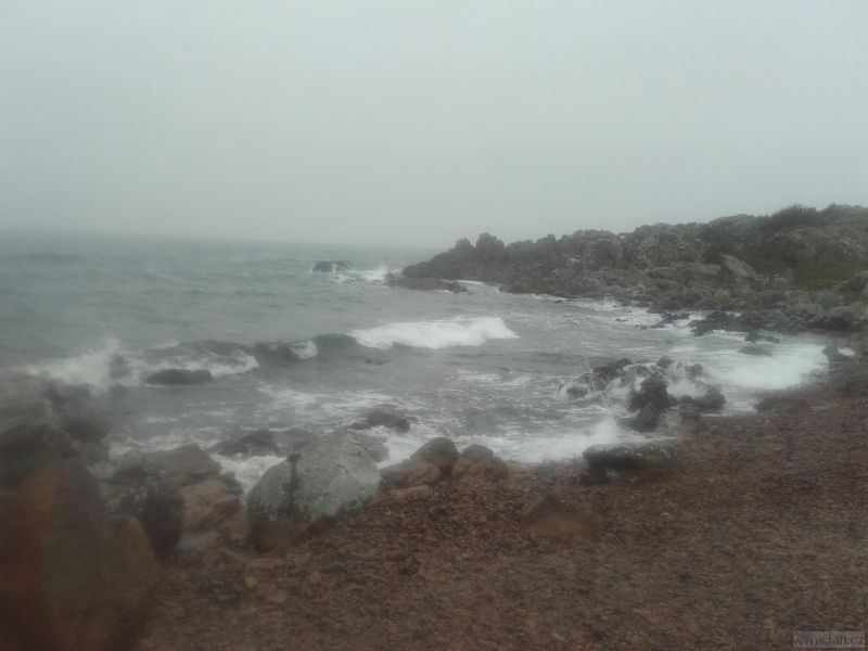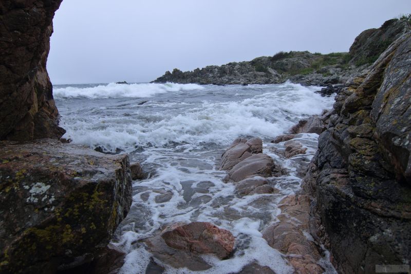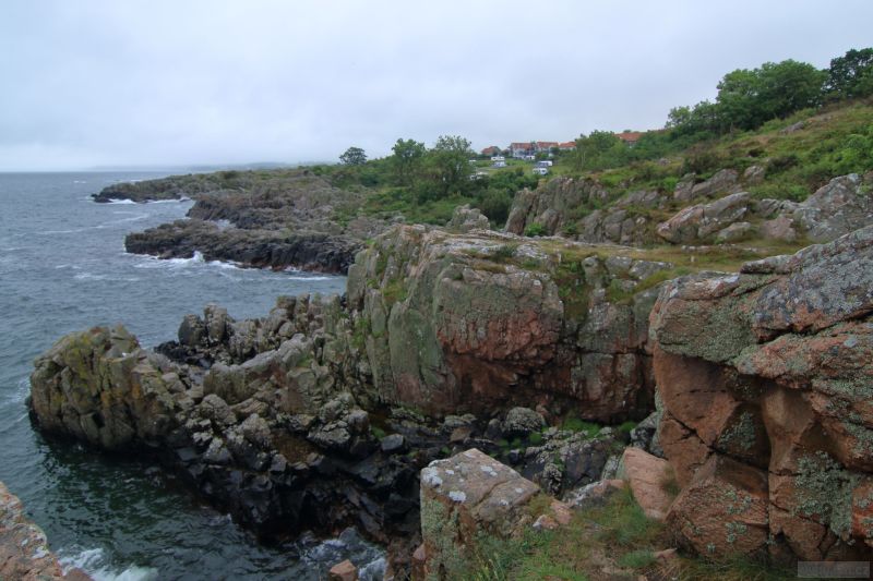 Nepřestává foukat, podle předpovědi má vítr vydržet minimálně do poloviny týdne. Ale má změnit směr. To by se nám mohlo hodit. V mezidobí přestává pršet, ba se přímo dělá hezky, ale nepřestává fičet. Ostatní tady mají kola a využívají toho. Rozhoduju se na poslední chvíli k pěšímu výletu na severní mys ostrova. Vycházím až odpoledne, ale co. Cesta pro pěší zezačátku vede těsně kolem pobřeží, pod stromy je příjemný chládek, ani tady moc nefouká. Ze skal nad mořem jsou bezva výhledy, ale začínají mě prudit rodinky s dětmi. Je jich tu na můj vkus až dost. Pokračuju dál, začíná se dělat hic. Na jedné pláži svačím, ale na zevlování nemám čas, jestli chci dojít až na severní cíp Bornholmu. Jdu, jdu a jdu. Cesta se stává nekonečnou. Poslední kilometry jsou po asfaltu, což nesnáším. Před majákem k překvapení potkávám naše cyklisty. Je tu i cedule s údaji o síle větru (12 km/s) a teplotě vody (16 °C). Vlny jsou tady výživné, opravdová seakajakářská výzva. Už jsem dost uchozený a to mě ještě čeká cesta zpátky. V přístavu objevuju fastfood Allinge Havnegrill, konečně. Neodolám, hamburger a pivko mi spravují náladu. Asi na tom nejsem tak špatně, to jejich pivo do mě neteče. Po načerpání energie pokračuju v cestě. Někde kolem města Tejn mě dohání deštík. Divné město, nikde otevřená restaurace. Beru za vděk alespoň autobusovou zastávkou a hraju si s myšlenkou návratu busem. Jejich jízdní řády v podobě QR kódů mi čtečka od Seznamu odmítá načíst. No nic, počkám, až se vyprší a budu pokračovat po svých. Do kempu přicházím chvíli před soumrakem a unavený. Jdu si brzo lehnout. Bylo mi divné, že jsem chodil, a ne pomalu větší část dne. Při zadání trasy doma do počítače mi z toho vylezlo přes 40 kilometrů. Tak asi proto :-).
