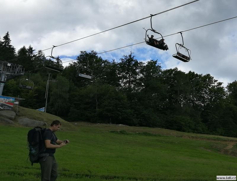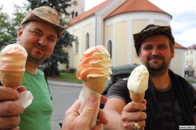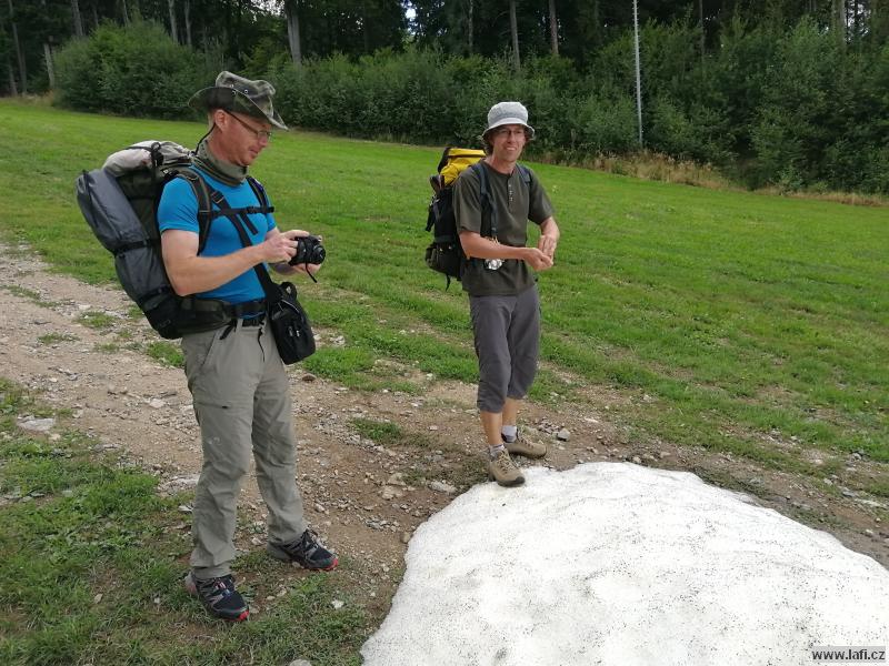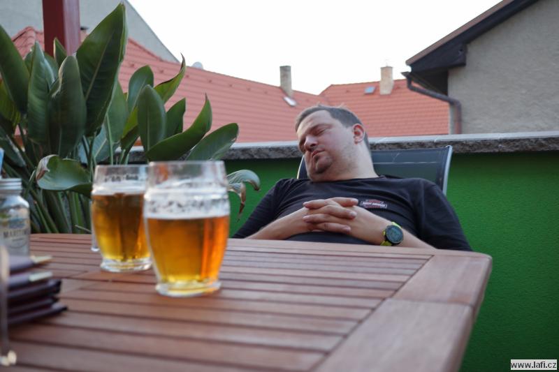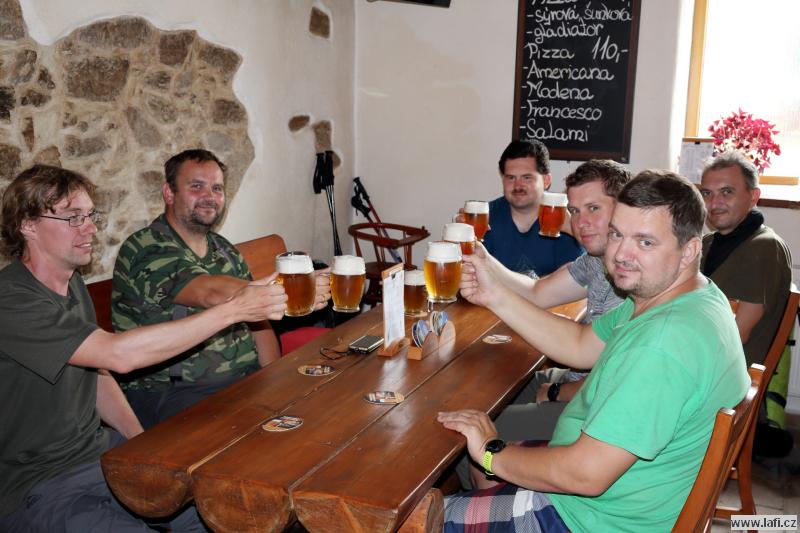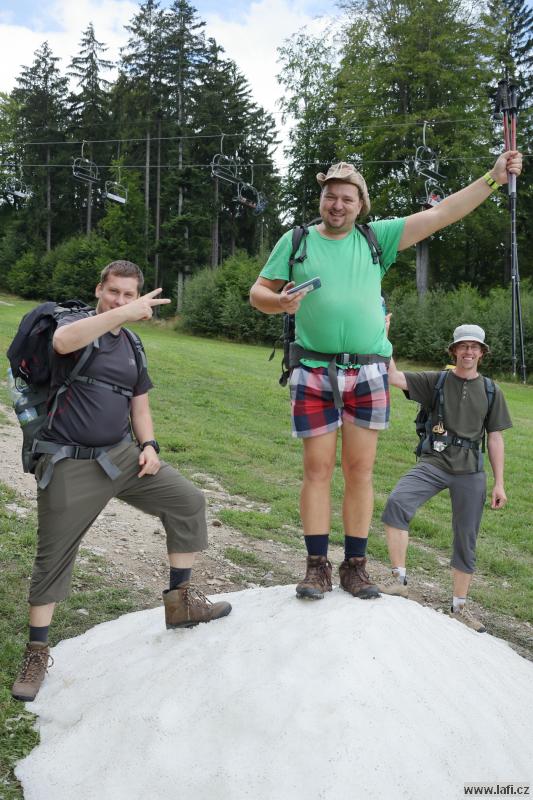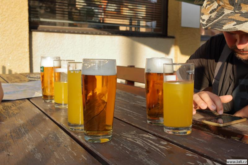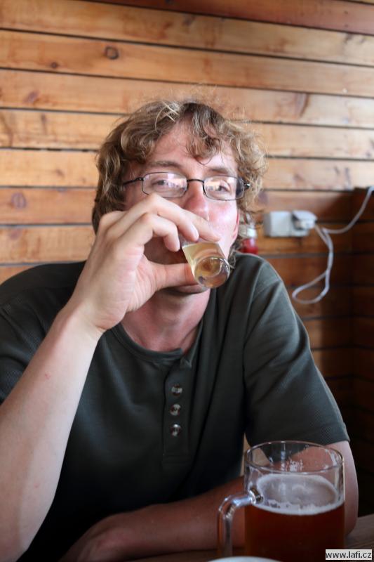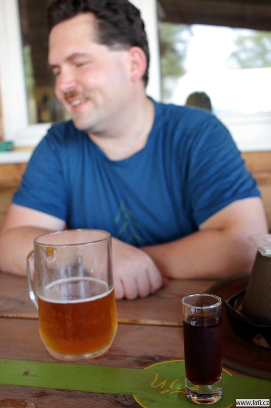Druhý den se těšíme na starou Poštovnu, ale ouha. Je nepřístupná, prže kolem je jakýsi dětský tábor. Turistická placka nula, pivko nula. Jsme smutní a zklamaní. Míříme na Monínec k lanovce. Část výpravy využívá k přesunu pod kopec lanovku. My ostatní si sjezdovku vychutnáváme po svých. A taky hromadu sněhu! Opravdu, uprostřed léta jsou tu hromady vytvořeného umělého sněhu. Svádí to ke koulování, ale „sníh“ podezřele smrdí. Radši pryč s ním, než nám slezou nehty. Prohlížím si místní traily netuše, že za necelý rok se tady budu prohánět na novém biku. Restaurace M2. Jídlo průměrné, piva točí podmíráky. Obsluha neochotná, radši jdeme dál k Pilskému rybníku. Je to tu bezva. Rybník s lávkou, koupeme se, zevlíme, kluci vaří kávu, užíváme si léta. Nic ale netrvá věčně, proto jdeme do Prčic. Skutečně, máme spadeno na místní pivovar Vítek. Dobré jídlo i pivko, ani se člověku odtud nechce. Jirka naznačuje, že ve zprávách od jeho drahé polovičky se začínají vyskytovat vykřičníky. Významné vykřičníky. Po kontrole fyzického i psychického stavu kamarádů přehodnocujeme další plán cesty a míříme do Heřmaniček, kde se s některými (většinou) kamarády u vlaku loučíme. Tímto zůstáváme jen tři. Ujo, Ricco a já. Jsem nějaký přepitý, dělá mi problém do sebe vpravit další pivko. Nakonec se to daří a pokračujeme po modré někam složit hlavu.