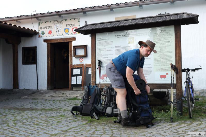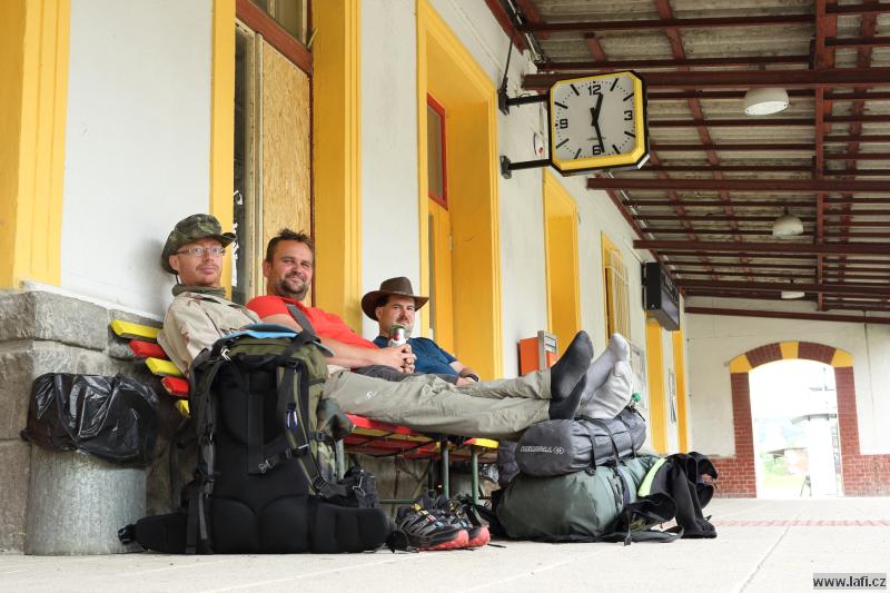 Ráno, po snídani, balení atd. míříme zpátky k vesnici, ale jen jí procházíme dál, jižním směrem. Pěkně se jde, žádné velké kopce se nekonají, asfaltu taky není moc, příjemné polojasno. Každou chvíli mezi námi kolují další a další plechovková piva. Vypadá to, že kluci se s nimi nechtějí tahat. Ještě jako bonus dostávám od Ricca nějaké plechy do batohu. Prý ho mám moc lehký. V Mezném svačinka v přístřešku, ze které se vyklube obědová pauza. Jirka nadhazuje, že možná skončí o den dřív. Prý jakési sms od manželky. Sbíráme se na cestu a za chvíli je před námi Jesenice. V ní kamarádi tuší hospodu. A skutečně, je tam. Sice má zavřeno, ale za necelou hodinu otvírá. Podvědomě cítím, že nemá cenu kluky motivovat na další cestu bez návštěvy místního pohostinství. Každý z nás využívá pauzu podle svého. Většina party skvotuje autobusovou zastávku, co je hned naproti hospodě. Nelíbí se mi tady, jdu se projít. Končím na dětském hřišti, kde v jakési lanové prolezovačce téměř usínám. Hospoda otevírá, hurá!