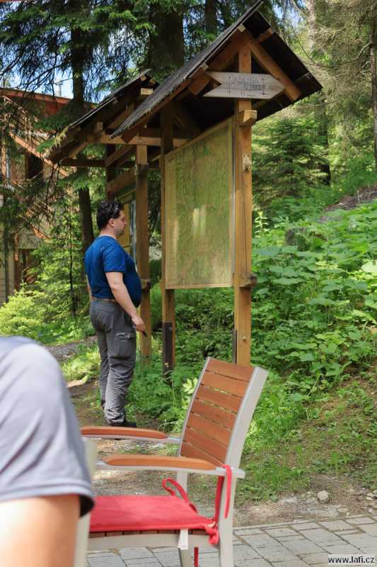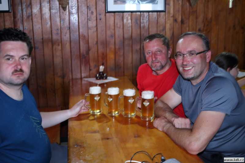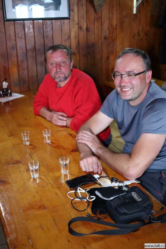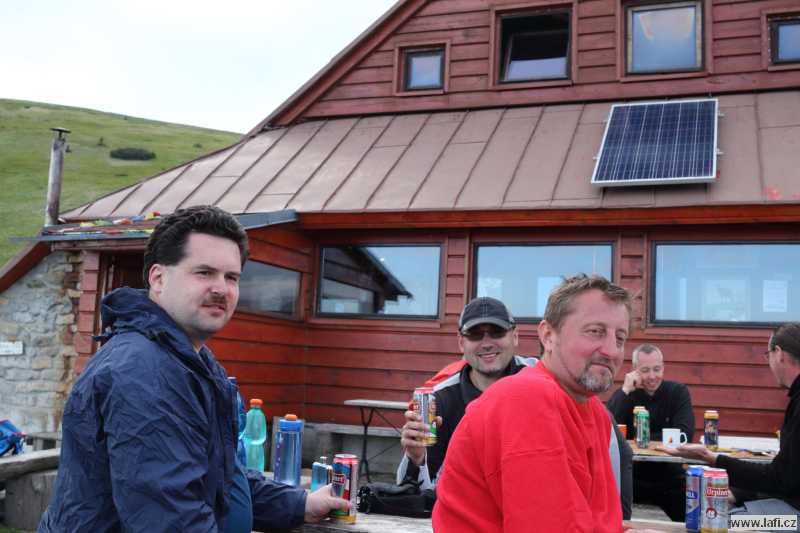 Ráno máme podle Jirky před sebou odpočinkovou trasu, jen kolem 16 kilometrů s mírným převýšením. U lanovky na Chopok bereme za vděk hospodou. Celkem chutný guláš, k němu pivko taky bodne. Pořád se cítím hladový, dávám si jakési domácí buchty, radši velkou porci. Konečně jsem se zasytil. S dlouhonohým Jirkou vycházíme v předstihu, prže má podle předpovědi slušně pršet. Cesta pokračuje po různě velkých kamenech, místy se hůř chodí. Je to pro mě nová zkušenost, ale nové boty i na mokrých šutrech drží jako přibité. Docházíme do Štefánikovy chaty včas, po cestě nás zkropí jen pár kapek. Cítím se dost unavený. V chatě je útulno. Ubytováváme se, dáváme sprchu a hurá do restaurace. Bohužel, na Ujův zrádný nápad hrát karty o panáky souhlasím. Během několika málo kol pro mě předčasně končí večírek a jdu si v pudu sebezáchovy lehnout. Mohl jsem to tušit, v karetních hrách pravidelně prohrávám.